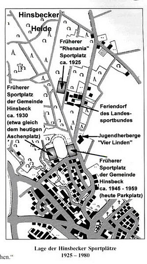Viele Rhenania - Spieler traten dem mittlerweile neu gegründeten Verein „DJK Germania 1928 Hinsbeck“ ein. Da aber der Rhenania - Fußballplatz nur vom VFL Turnverein genutzt werden durfte, mussten sie auf einen neuen Gemeindesportplatz (heutiger Aschenplatz) warten, der 1930 endlich in Betrieb genommen wurde. Es konnte dann endlich wieder Fußball gespielt werden und das sogleich sehr erfolgreich.